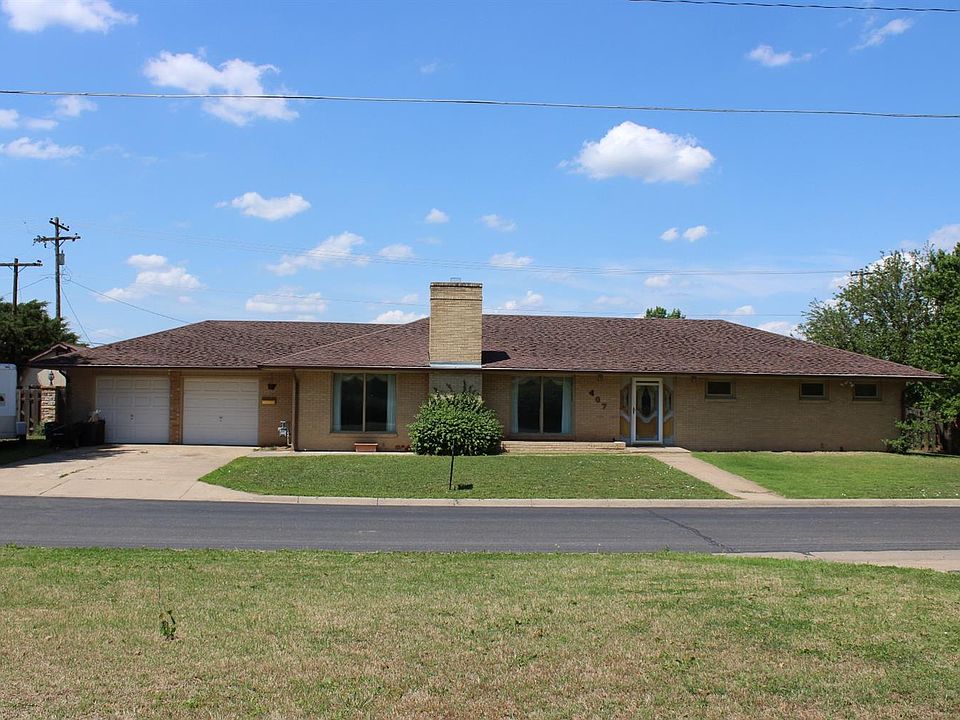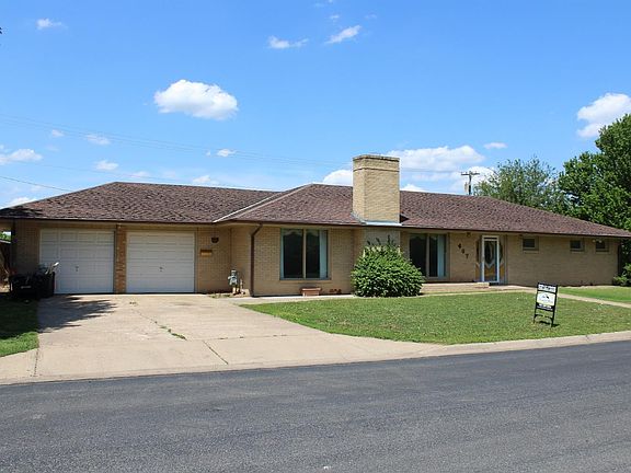 All brick home on a corner lot located in the NE part of Abilene. 2 large bedrooms 1 3/4 bath on the main floor. Oak kitchen cabinetry by Crown Cabinetry. 2 living rooms on the main floor, Fireplace, Formal dining room. Stackable washer dryer on main floor. 1 bedroom 1 bath, family room and laundry in the basement. Home will need a new roof and some TLC. The backyard has a ton of potential with the built in pond area and patio area. Extra shed in backyard for storage and is finished for hangout area. Give us a call today to setup your showing.