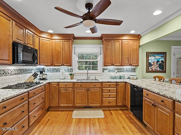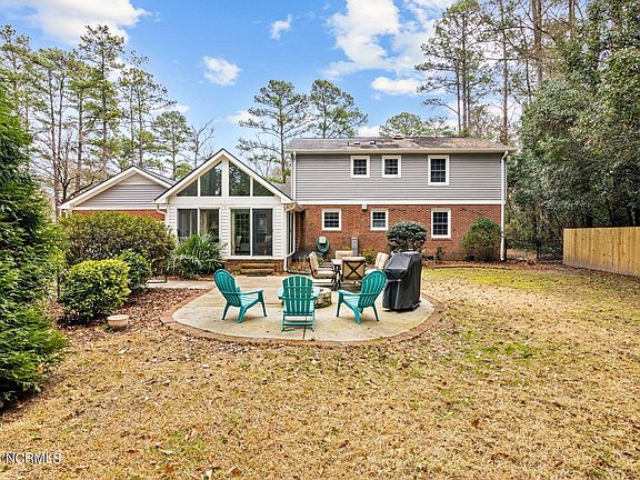 Introducing an elegantly renovated home situated in the heart of the highly coveted Trent Woods community! The kitchen is a chef's dream, complete with a double oven and warming compartment, stunning granite countertops, and ample storage in the custom cabinetry. The hardwood floors gleam, adding to the luxurious feel of the home. The floor plan effortlessly combines open spaces for entertaining with cozy, traditional spaces such as the den and formal dining room. The main floor features a bedroom with a nearby bathroom, while the finished Carolina Room opens up to the large, fenced backyard that boasts mature trees and expert landscaping. The circular driveway adds a final touch of elegance to the home's already impressive curb appeal. With plenty of parking, there's even an additional pad large enough to accommodate a boat or RV.