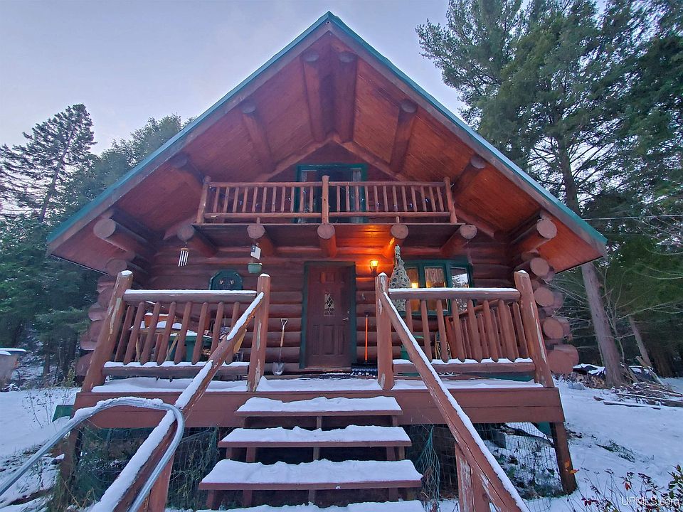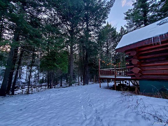 Well built log home or cabin sitting on just under 2 acres with the Cedar Creek running through the back yard. Built in 1992 with full logs and sitting on a full block basement with a new metal roof installed in 2015 this home is ready for its next family to enjoy for years to come. Located down a private road just off of 480, you have easy access while being tucked away with plenty of privacy. Walk in to a first floor full bathroom, a nice dining area & cozy kitchen. The living room has vaulted ceiling where you can enjoy the craftsmanship of each log as well as stunning views of your back yard oasis. Upstairs is a bedroom/loft with it's own private exterior balcony looking over the yard and an interior balcony looking over the living room. From the living room is a large deck positioned perfectly for taking in views & sounds of the Cedar Creek flowing through the property. From the deck you have a nice BBQ area and a sauna building! Additionally, there are a few sheds for wood & a 28'x24' detached garage. So if privacy, nature & tranquility all while living in ease are what you are looking for, this may be the one for you! The Point well (brand new), 1000 gallon septic, natural gas forced air & power are all connected and in working order.