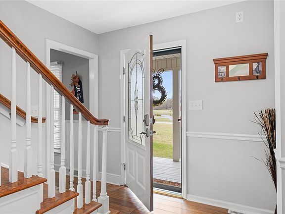 Two car attached side entry garage with storage room, in addition, there is a detached two bay garage with electricity for your hobby cars, motorcycles, man cave, home gym, endless possibilities! Gutters have been updated and added leaf guard covers on front gutters. Septic inspected and lines cleared in 2023. Fixed the sump pump. The upper balcony was rebuilt, and deck and front porch have been stained. Replaced kitchen/garage interior door 2024.