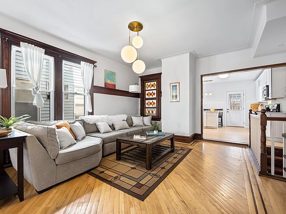 Welcome to 407 E. 3rd St. This renovated, fully detached single family home will check all of your boxes. Here you'll find 4 bedrooms, 2.5 baths, an open kitchen, parking, a large backyard, a finished basement with a recreation/media room and a great home office. This turnkey house has beautiful details: fretwork; stained glass; original decorative plasterwork and hardwood floors with mahogany inlay. It's the perfect combo of old meets new. Walk up the front steps to a sweet covered porch, perfect for sipping coffee. Enter to find a spacious open floor plan. With four exposures, you'll have light all day. Three bay windows are at the front of the house. There are new boutique lighting fixtures in the dining and living room as well as three beautiful stained glass windows. A powder room and a coat closet complete this floor. The living and dining room are great for entertaining or lounging about. The windowed eat-in-kitchen has new quartz counters and fresh white cabinetry, a breakfast bar and stainless steel appliances, including a brand new double-door fridge. Cooking will be a joy.. There is a very useful pantry/mudroom and laundry is housed here. Step outside to the backyard - you'll find a large deck, room to grill, and a yard big enough for a slide and a rock wall for the kids as well as comfy lounging for friends over a fire pit and a table for al fresco dining. The second floor has two bedrooms and the main bathroom. The primary bedroom is quite large, and has three bay windows - it is truly a serene retreat. The second bedroom is an ample size and has two exposures. Both have ceiling fans. The main bath has a jacuzzi tub and a separate stall shower. It has a new marble topped vanity and medicine chest. The top floor has two very large and charming bedrooms, one with two exposures. There is brand new oak hardwood flooring on this level. The finished basement has a large recreation room/media room, a separate windowed office, a pantry and it houses the mechanicals. The gas boiler is brand new, as are the compressors for the a/c throughout the house (a ductless mini-split system). Electric has been updated. There are beautiful hardwood floors on the top 3 levels, with ceramic floors in the basement. This is a great Kensington location, close to all! The retail corridor is just down the block. It's a short walk to the Greenwood playground, the Windsor Terrace Library, and about a 10 minute walk to Prospect Park. It's just two blocks to the F/G trains, and near multiple bus lines. There are also great eateries nearby, including Thai Farm Kitchen, Hamilton's, Steeplechase Cafe, Soho Cafe & Grill, Batata, Wheated, Werkstatt and Der Pioneer. Come take a look - you will want to make this home yours.