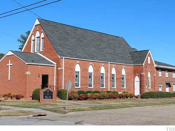 The building is currently being used as a church. The property has a 30x20 shelter and 45 parking spaces. The property has kitchen, dining, 11 other rooms - 7 being used as clasrooms and 4 being used as offices currently. Sanctuary 48.7x30.5 and a choir loft 12.4x12. Large entrance and foyer area. Church is on corner lot in the Historic down town Benson.