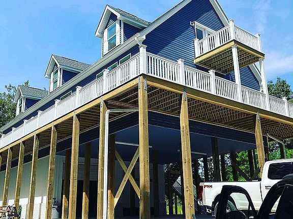 5 bedroom, 3 bath, open concept true chefs kitchen with meat aging locker, double wall oven 6 burner chefs cook top, 2 zone wine fridge. 2 master bedrooms. Full kitchenette and family room on 2nd. Floor with 2nd. Master that has a walk out deck and another huge guest room. 14 foot Pilings on inter coastal creek in sought-after Deerfield community.