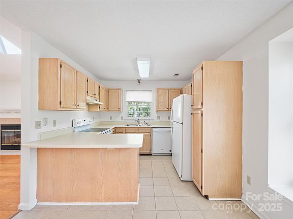 This 3 bedroom 2 bath 1444sf home is ideally located, convenient to both Asheville and Hendersonville. There is a cathedral ceiling living room, spacious master bedroom with ensuite bath, and two spacious bedrooms. The kitchen is large with adjacent dining area and breakfast bar. Lots of light and warm color. The back and side yards provide room for gardening, pets, and playroom for kids. Two car attached garage. The Southchase neighborhood is friendily and walkable. The house is located on a cul de sac. There is room for a full size washer and dryer in the laundry closet located on the main floor. The lot is flat with no entry obstacles. Engineered wood floors in living room and bedrooms with tile floors in the kitchen, dining room and baths. Seller is NC licensed realtor.
