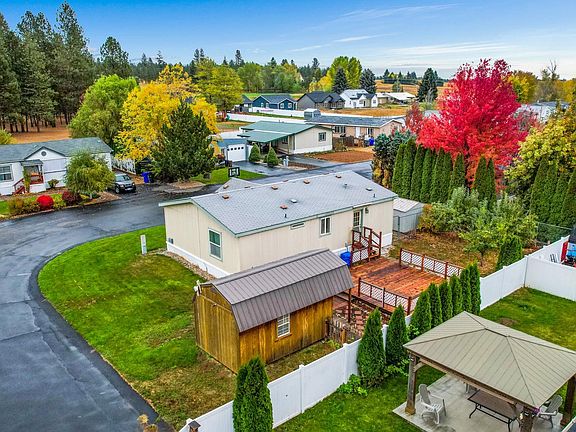 Tired of shoveling snow? Come check out this home. Lot rent includes sewer and SNOW REMOVAL! This 3 bed 2 bath includes a walk-in master closet, washer and dryer, and frrezer in an open floorplan. Come enjoy the huge open deck in your own private, fenced back yard. Mature fruit trees will give you an abundance of golden delicious and granny smith apples as well as sweet juicy plums. The roomy shed in the back could be used as overflow storage or turn it into a she shed or a place to send the kids to game, with power run to it. The options are limitless! There are 2 raised beds, just wating for spring. This home is conveniently located just blocks from almost anything you might need....pizza, tacos, burgers, brewery, coffee, Yokes, auto parts, urgent care, a gym, Bi-Mart, hardware store, gas station, pawn shop, dollar store...ITS ALL THERE!