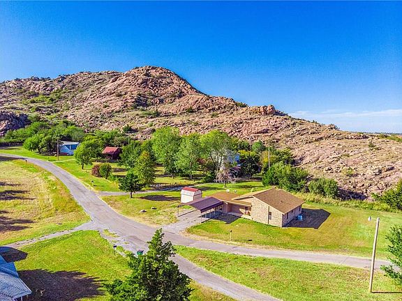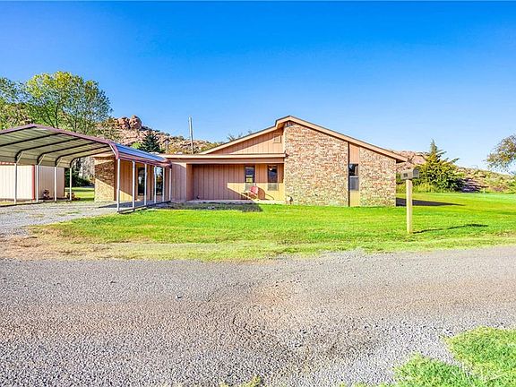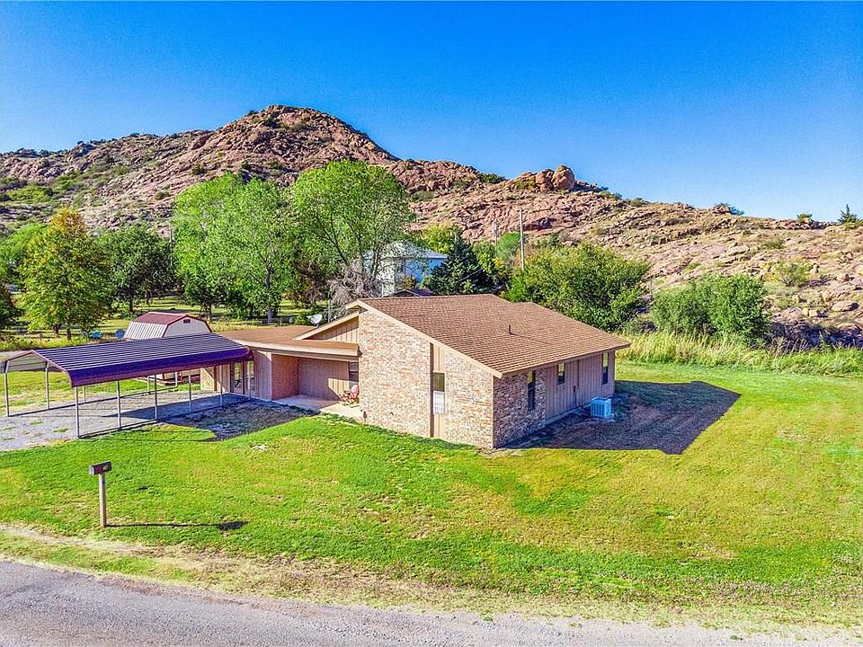 What a VIEW! What a LOCATION! This nice 2 or 3 bedroom home is nestled at the base of the Granite Mountains on almost a half an acre. All of the homes in this quiet neighborhood are on large lots. The kitchen has stainless steel appliances that will stay with the property, including a French door refrigerator with a bottom freezer compartment, dishwasher, and an electric stove with a double oven. The garage has been converted to a bonus room that is currently being used as an office and exercise room but could be a 3rd bedroom. The home has a full house generator to supplement the home with electricity in case of a power outage. There is a nice storage building for your lawn tools and equipment. The riding lawn mower will stay with the property. CH&A. 2-car attached carport. Newer storm shelter. New roof October 2019.