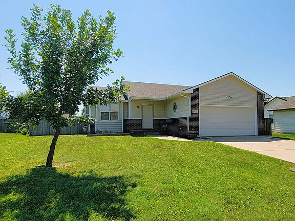 This beautiful 4 bedroom, three bath home is nestled in a cul-de-sac in the town of Mulvane. Upstairs you'll find an open floor plan including a full bath, bedroom and the primary bedroom. The primary boasts a standard closet, in addition to a walk in closet, full bathroom with two sinks, a jetted tub, and walk in shower. The basement provides a full bathroom, two finished bedrooms, basement laundry, ample storage, and a large family room. The basement has all new carpet. Outside you'll enjoy a spacious, full fenced yard, with a storage shed and swing set. Schedule your appointment to see this well cared for home today!