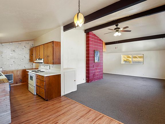 Located on almost a quarter acre, corner lot this all electric 2 bedroom, 1 bathroom home features 960 square feet, vaulted ceilings with exposed beams, upgraded vinyl windows and a bonus Arizona room. The outside has an uncovered patio, storage shed, fully fenced yard with mature trees, attached carport and RV Parking with gate. New roof was installed February of 2024.
