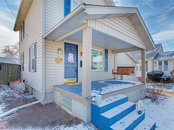 Here is your chance to secure a spot in the adorable town of Minerva with this 2 bedroom 1 bath bungalow right down the street from Bicentennial Park and Minerva municipal park/swimming pool. This charming home has had plenty of updates over the past couple years including a new roof, furnace, A/C, electric, plumbing, and more! Walk into the front door to the living room with new wood look laminate floors and fresh paint. The eat-in kitchen around the corner has nice space with granite counters, a new farmhouse sink and faucet, freshly painted cabinets, and a new dishwasher. The kitchen has real hardwood flooring that was sanded and stained last year. Both bedrooms upstairs also have real hardwood floors. The owner’s suite floors have been sanded and painted this year. The bathroom is new from top to bottom with vinyl flooring, toilet, vanity, and a subway tile shower giving the bathroom that modern sheek look! The outside of the home has a couple neat surprises. With the growing cost