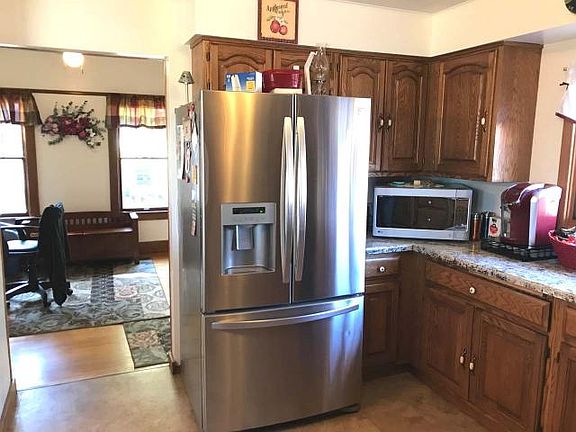 This spacious well-maintained 5 BR, 2 BA home features a new energy efficient forced air/central air furnace, a nicely remodeled kitchen with some new appliances, and a new large dining room bay window and interior door that leads to the lovely three season sunporch where you can enjoy your morning coffee. The main floor features beautiful hardwood floors, a main floor bedroom and bath, a kitchen with a large opening to the formal dining room, living room, and an entrance room perfect for an office or den. There is gorgeous wooded wainscoting and trim work throughout the home and spacious bedrooms. An above ground pool, 12'x10' storage shed, 1 car garage and gazebo are all included. Call today!