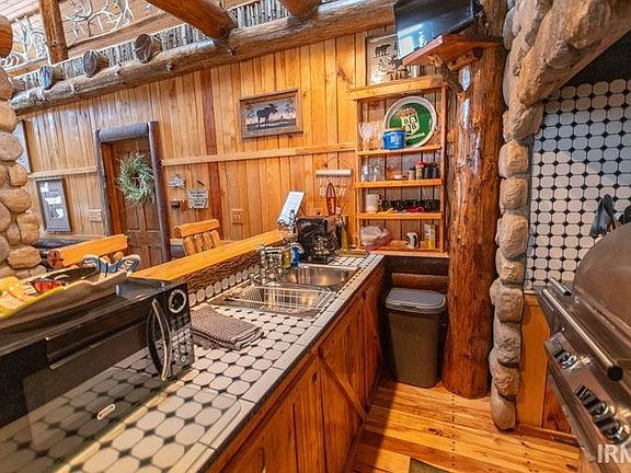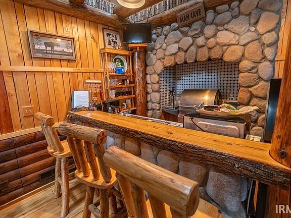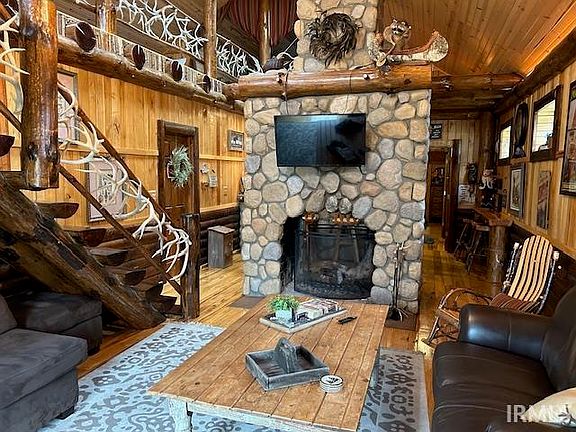 Back on the active market - Due to buyer financing. One of a kind residential pole barn!!! Once inside you will see an authentic log cabin home. Hundreds of deer antlers line the staircase and railing. Exposed large wooden logs, wood flooring and Huge see through rock fireplace (wood burning). Vaulted ceilings with the unique grill kitchen. Has commercial style vent for the inside grill. Not to mention the movie theatre room tucked away on the second floor. This one bedroom, 1 full bath has over 2,000 sq. ft. of living space. The drive through garage area is 64' long and has 1184 sq. ft. of inside storage. This property has countless opportunities: Single Residence, storage facility, Man Cave or use as an income producing property. Agent has interest in the property. Buyer's Agent to confirm all measurements and legal discription.