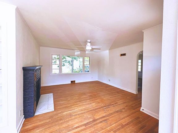 Step into this beautifully updated home that preserves its historic charm. This 2-bedroom, 1.5-bathroom residence welcomes you with original hardwood floors and a front room featuring a large picture window that flows into the living room area with a cozy wood-burning fireplace. The kitchen is fully updated with a ceramic marble tile floor, new cabinets and hardware, a new sink, a subway tile backsplash, and new gas stove and dishwasher. On the other side of the home both bedrooms are generously sized. The main level bathroom boasts new ceramic tile floors, a new toilet, vanity, medicine cabinet, updated plumbing fixtures, and a marble tile shower surround. The interior doors feature new doorknobs designed for use with skeleton keys, adding to the historic charm. The unfinished basement offers a convenient half bath and plenty of room for potential growth. Step outside to the spacious side yard, offering endless possibilities for outdoor living, gardening, or entertaining.