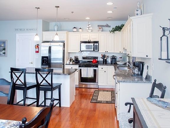 This is a must see, Not only is this unit pristine so is the whole complex .This first floor unit features 3 bedrooms and 2,5 bathrooms, It has a huge open area that is great for entertaining It has granite counter tops ,stainless steel appliances. and hardwood floors thru out,Within the past 5 years the floors were redone as was the kitchen cabinets the dishwasher was also replaced and the unit was repainted, Located just across the street from the park and the beach, This complex also has a big pool with outside showers and bathrooms,You can also relax on the roof top deck that overlooks the park and beach
