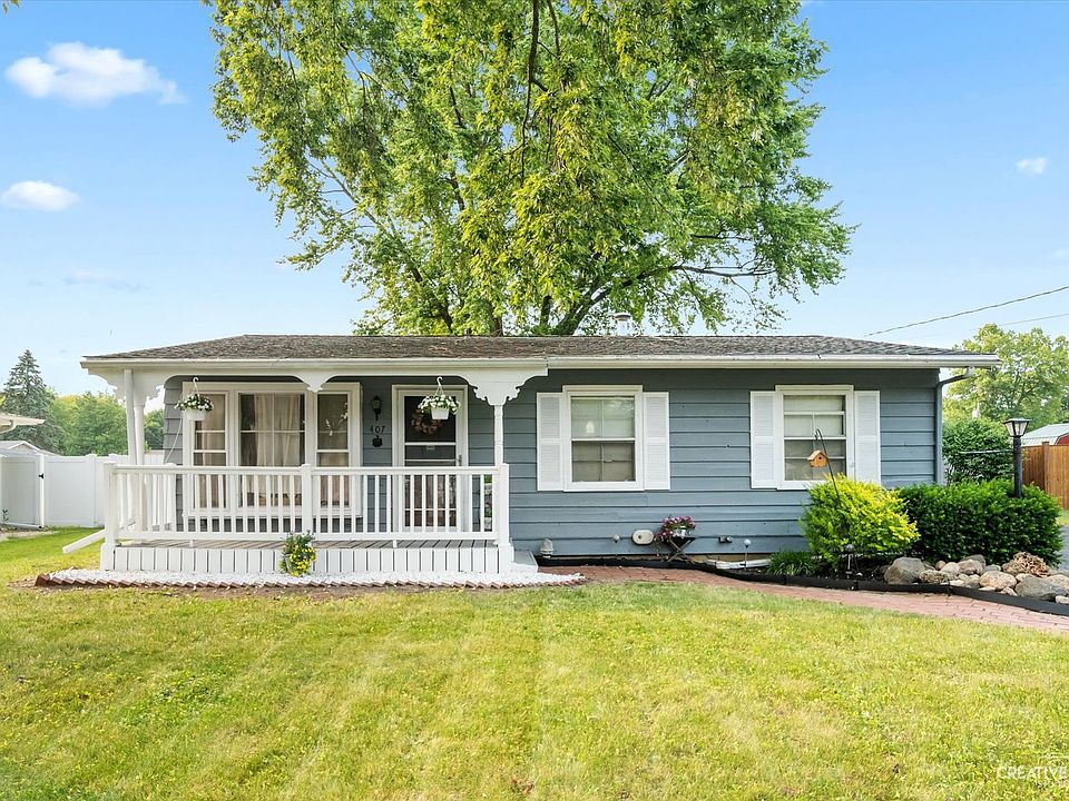 Charming 3 bedroom ranch home with SO much new, nothing left to do but move right in! New HVAC, A/C, hot water heater (2022), Fresh exterior paint (2023), Bathroom, kitchen and living room freshly painted (2023), basement and basement bathroom remodel (2022), brand new tub in main bath (2023). Stunning curb appeal with covered front porch, perfect for sipping your morning coffee. Open kitchen with beadboard ceiling, stainless steel appliances and backsplash. Spacious living room with cozy brick fireplace and striking wooden beams. Full finished basement with bedroom, rec area, bathroom and storage area! Private fenced in backyard with TWO story storage shed, kids playhouse, patio, deck and gazebo. Perfect space for entertaining! TWO story workshop above the garage! Walking distance to school, parks and downtown Plano. This one won't last long!