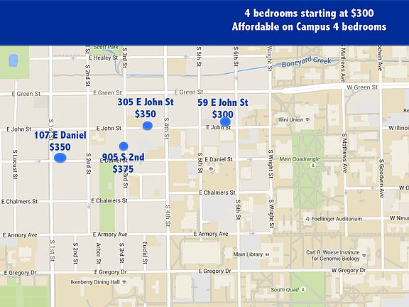 Kennedy Wilson offers a great variety of upscale on campus apartments. Call 217.384.5555 today to find out about 1,2,3, and 4 bedroom units available. There are individual leases available for some 3 and 4 bedrooms starting at $284 per person. Our top location 2 bedroom apartments with individual leases are available at: 302 Cedar- starting at $899 310 Chalmers- starting at $800 407 Stoughton- starting at $600 605 4th - starting at $1095 801S 4th- starting at $850 905 2nd- starting at $800 1010 1st- starting at $650 1012 1st- starting at $850 1117 Plymouth- starting at $930 1119 Plymouth- starting at $895 Apartments go quickly- please ask agent on the phone what units are available and what you need to bring for the showing to sign the lease same day to avoid disappointment. The units vary but all of the apartments offer spacious floor plan. These unique apartment homes feature grand renovations including stainless steel appliances, enormous kitchen complete with dishwasher, new countertops, new dark wood cabinets, new flooring, and new light fixtures. The properties boast a massive private balconies and come fully furnished with a couch, loveseat, coffee table, two end tables, built-in dining table and chairs and full size beds and dressers for each bedroom. FEATURES OF THE COMMUNITY: On-site covered parking is available starting at $40 per month. No car? No problem! We provide on-site bike racks as well. Or if you prefer to take the bus, it stops half a block from the property. In unit washer and dryer or shared laundry available. LEASE TERM: AVAILABLE AUGUST 2015-2016 CONTACT INFORMATION: CALL US TODAY AT 217-384-5555 to schedule a visit or check our website at www.kennedywilson.com/uiuc The properties are professionally managed by the friendly service oriented staff at Kennedy Wilson, an international real estate investment and services company with over 20,000 apartment units under management. Our local team of professionals will provide our residents with friendly service and 24 Hour On-Call Maintenance.