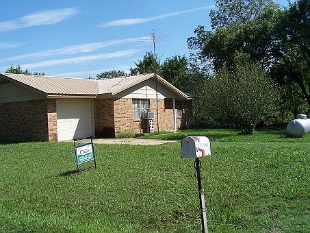 Built in 1989, this traditional 2 bedroom 1 bath home sits at the front of a lush 10.5 acres with a small creek crossing the middle. The interior of the home has been recently painted and features a brick hearth in the large 15.5x15.7 living room. The two bedrooms measure 9.6x15.1 and 11.8x11.6. There is also a one car attached garage. The metal roof is only 3 years old. The home is total electric and has rural water. Tamaha is home to Oklahoma's oldest jail & largest oak tree!