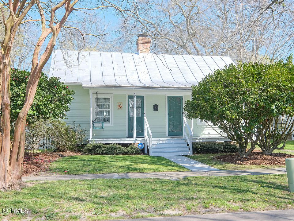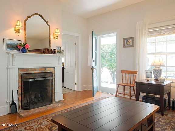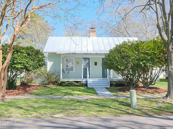 Become part of Edenton's Historic Cotton Mill Village in this lovely 1915 Cottage! This charming house offers the opportunity to live in one of the most popular neighborhoods that sits within walking distance to the waterfront and downtown area. It is one of the few former duplexes that had two entrances, original bead-board walls, and is flanked by two of the oldest camellia bushes in the area. Only one front door is in use and opens into a large living room with so much natural light. It has been updated throughout and allows for additional sq footage to be added to its footprint, per the covenants. Two bedrooms and a bath make it a comfortable home or getaway. The fireplace in the living room and front bedroom are original to the house. The kitchen is so spacious and bright that you will spend many days enjoying the view of the back yard. A bedroom and bath on the back of the house are easily accessible. Enjoy the fenced yard and patio for warm nights in the coming spring weather.