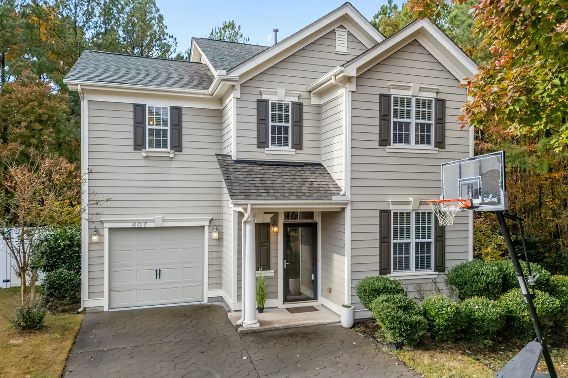 Just 10 minutes from I-540 and RDU, this charming 4-bedroom, 2.5-bath home offers the best of both worlds-- easy access for commuting and a peaceful setting on a cul-de-sac! The main floor features a flex space with French doors, hardwood floors, and an abundance of sunlight. The spacious living room seamlessly ...