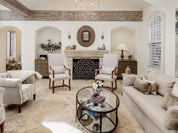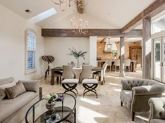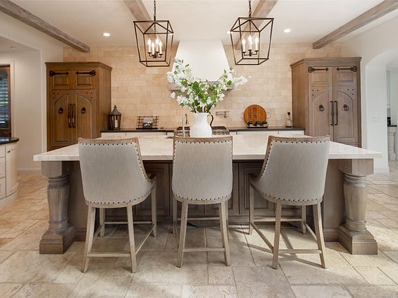 This French Country Transitional renovation is truly one of a kind. The single level custom home on the 11th green of the Jack Nicklaus golf course in Pasadera features 4,300 square feet of luxury living. You find yourself in an appealing serene and timeless Transitional design palette with the best of indoor/outdoor living. The soaring ceilings, exposed beams, designer lighting, multiple French doors and open living spaces throughout meld beautifully to create a home that is filled with light, warmth, texture and fabulous venues for entertaining. The oversized chef's kitchen with a dramatic quartzite center island is the base to an open entertaining area that seamlessly integrates the outdoors with the indoors. Featuring travertine floors, a stone fireplace, custom cabinetry, gourmet appliances and a luminous 600 bottle glass wine cellar, the home is unparalleled. The resort like outdoor living area is equally amazing with expansive patios, fire pit, Wolf BBQ and pizza oven. The luxurious master suite offers soothing courtyard views, a private sitting room and an exquisite spa-like master bath. Two two-car garages for cars and toys.