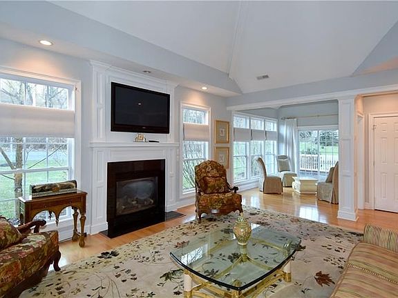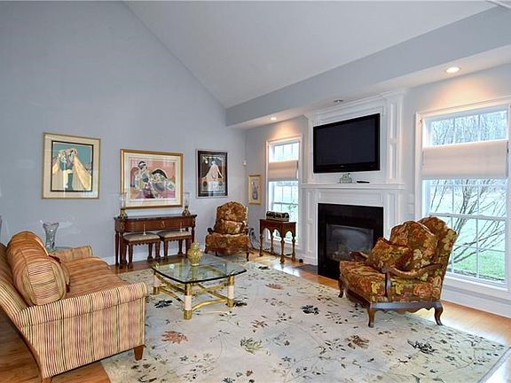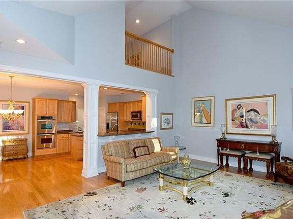 Open floor plan with light-filled rooms! 1st floor master suite! Hardwood floors throughout (1st and 2nd floors). Spacious fully-equipped kitchen with center island, granite-wrapped counters, stainless steel appliances (including double ovens),glass backsplash, counter seating open to familyroom/living room which extends to sun room, formal dining room! Lofted area for office or 2nd floor seating area, 2 bedrooms upstairs with one ensuite. Quiet location with tons of yard space. Recent trees line the property.