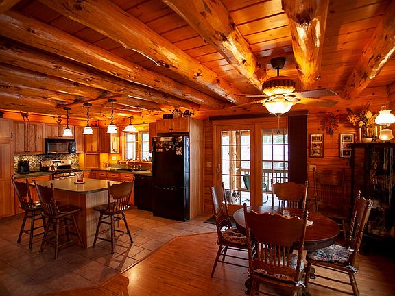 Views of mountains surround this stunning lake only 20 minutes away from Whiteface mountain ski area and only another 10 minutes to Lake Placid. Fern Lake is known for family enjoyment of all genres. This 10 year old log lodge is in perfect condition with 3 large bedrooms and 3 full bathrooms. The open floor plan has an abundance of natural light. Everyone will enjoy time in the kitchen around the large island, or eating meals watching the sunsets over the lake on the 40 foot covered porch. The quality of this house and the location are an unbeatable combination. The dead end paved road is a nice place for walks and bike rides. Many tri-athletes train in this area for the Ironman race. Level topography makes for easy access into the lake and the dock will easily moor a boat. People enjoy all types of water fun at the lake including cruising, skiing, paddling it's all welcome! The property needs no work, just a new owner looking to enjoy lake life now.