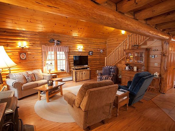Views of mountains surround this stunning lake only 20 minutes away from Whiteface mountain ski area and only another 10 minutes to Lake Placid. Fern Lake is known for family enjoyment of all genres. This 10 year old log lodge is in perfect condition with 3 large bedrooms and 3 full bathrooms. The open floor plan has an abundance of natural light. Everyone will enjoy time in the kitchen around the large island, or eating meals watching the sunsets over the lake on the 40 foot covered porch. The quality of this house and the location are an unbeatable combination. The dead end paved road is a nice place for walks and bike rides. Many tri-athletes train in this area for the Ironman race. Level topography makes for easy access into the lake and the dock will easily moor a boat. People enjoy all types of water fun at the lake including cruising, skiing, paddling it's all welcome! The property needs no work, just a new owner looking to enjoy lake life now.