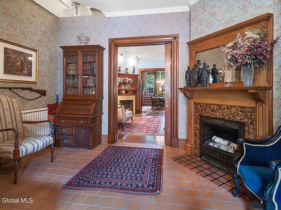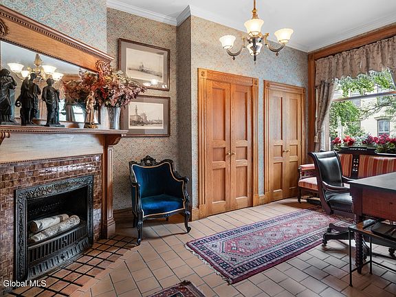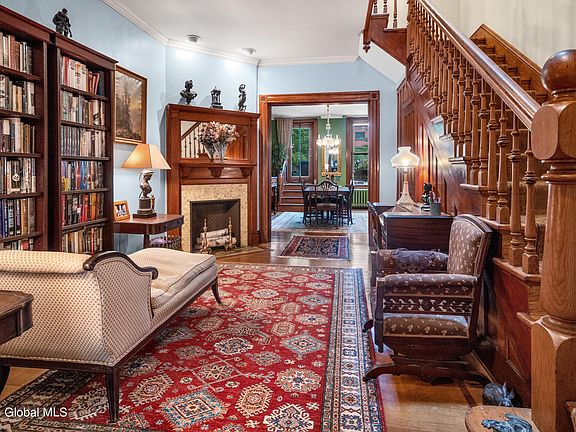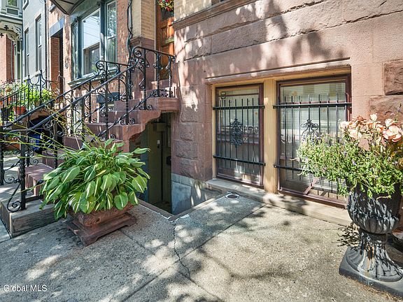Enjoy city living at this historical, Neoclassical brownstone, located on one of Albany's most exciting and vibrant blocks. This home comes with an 810 square foot garden apartment for passive income, storage, or a perfect in-law opportunity. Stunning original details include cornices, mantels, medallions, woodwork, crown molding, & exposed brick, which flow seamlessly w/ modern updates. The kitchen is a host's delight, offering butcher block countertops, stainless steel wall oven, and gas range. The dinette provides plenty of space for guests, and a custom quartz bar, w/ wine fridge and storage. Owners' suite on the upper level is complimented with tons of natural light and a timelessly updated full bath with steam shower. Park-like, fenced in yard. This one is sure to please!