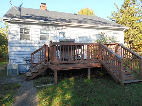 Vinyl ranch, 2 bedrooms, 1 bath, central heat & air, gas log fireplace, appliances, large rear deck, storage building, in town.