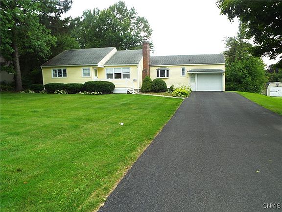Nestled in a peaceful neighborhood, this home offers a prime location, just moments from local shops and the NYS Thruway. Set on a spacious, landscaped lot, the property features a large driveway perfect for multiple vehicles. Inside, the open living and dining area boasts a cozy fireplace and hardwood floors, while the kitchen impresses with cherry wood cabinets, a center island, and a generous pantry. The home includes three bedrooms, one and a half baths, and a carpeted family room with ample built-in bookcases. Plus, enjoy the three-season room and patio for additional relaxation and entertainment space.