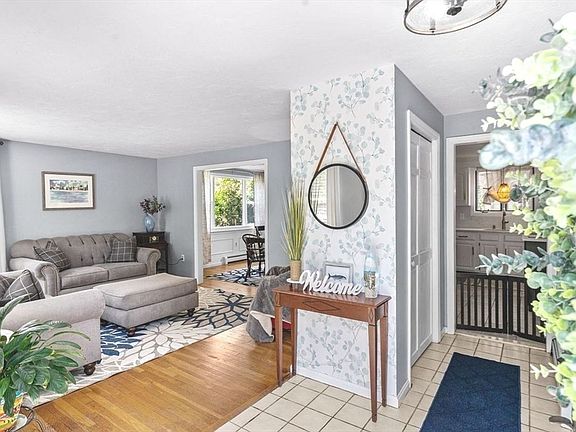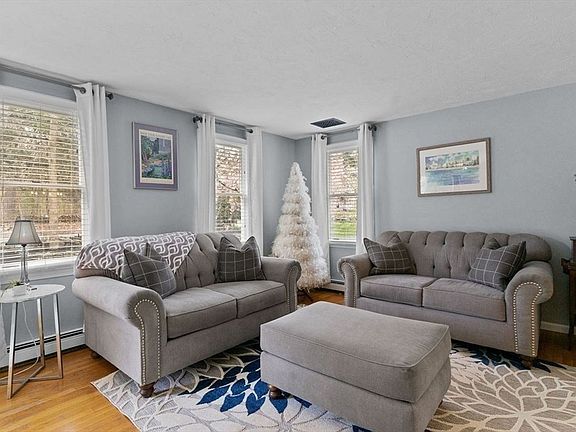 Welcome to this stunning 3-possible 4 bedroom, 2.5 bathroom colonial in Taunton, MA. This home features modern upgrades and charming details throughout. Inside, enjoy natural light, hardwood floors, and a cozy electric fireplace in the spacious living area. The kitchen boasts granite countertops, stainless steel appliances, and a sliding glass door leading to a 3-level deck with a screened-in gazebo. Upstairs, find generous bedrooms, including a luxurious primary suite with a heated bathroom floor and walk-in closet. Practicality meets beauty with a newer roof, updated water tank, and serviced boiler. Ample storage, a walk-out basement, and a 2-car garage offer convenience. Outside, admire the manicured landscaping and firepit area. Schedule a showing today and experience comfort, elegance, and functionality.