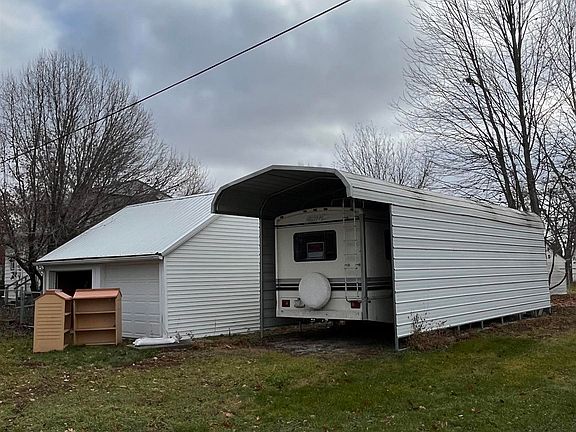 2 bedroom with large walk in closets, 2 full baths, updated kitchen with appliances included, newer furnace, central air and water heater, replacement windows, metal roof, permanent siding, fenced in back yard on double corner lot, 3-car detached garage with metal roof and extra work area, 2-car detached garage with metal roof and extra work area and storage, RV port.