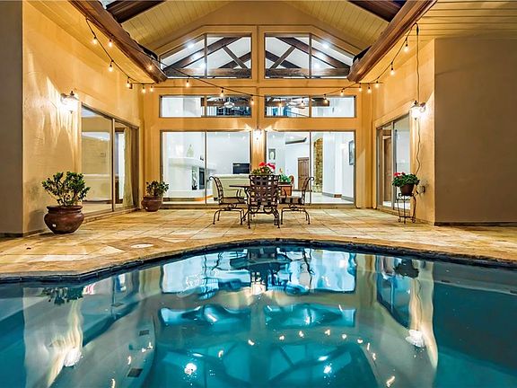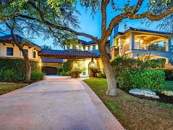 Crisp, Clean, and Entertainers Dream! This updated custom home is a true escape in the exclusive golf and lake community of Lakeway TX. The private home site overlooks a pool oasis, Lake Travis and the Texas Hill Country. Soft contemporary Santa Barbara architectural details enhance the dramatic ceiling treatments throughout. Grand spatial living areas with a massive kitchen open to generous covered outdoor living areas and are overlooking the refreshing pool with spa. The home has been meticulously updated and is ready for your enjoyment. Crisp white walls are enhanced by stained wood window casings, crown moldings and baseboards. Two story indoor waterfall compliments the double iron door entry. Kitchen features a double island, professional appliances and stone details. Oversized master wing with custom built closet and private courtyard. Additional downstairs bedroom with en-suite bath overlooking pool. Multiple massive by-pass glass doors throughout home! Upstairs game room with wet bar and adjoining media room with two level outdoor living area, fireplace, and five-mile lake views. Adjacent to Lakeway Park! No HOA!
