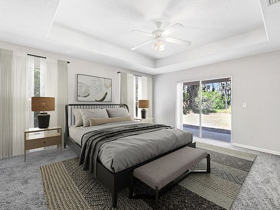 This spacious 3 bed 2 bath split plan, CBS home is within walking distance of Bayside Lakes High School. Home features over 2,000 square feet under air with beautiful tray and vaulted ceilings. Open concept with natural lighting throughout. Home offers a spacious kitchen with plenty of room for family gatherings. Granite in both bathrooms, recently updated. Double vanity in primary bath. This home has City Water. Roof is only 5 years old. Priced to move quick so schedule your private showing today.