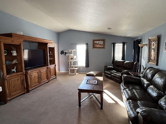 Very nice modular home on the edge of the Ranchettes. Has 4 Bedrooms and 2 baths with 2 LIVING ROOMS. Kitchen is decent sized with plenty of work space. The master bedroom is away from the guest rooms and has a large bathroom and walk in closet. Plenty of parking here and fully fenced. Covered patio outback for grilling and chilling. The owners are putting a new roof on the house in the next 30 days. Call now for more details
