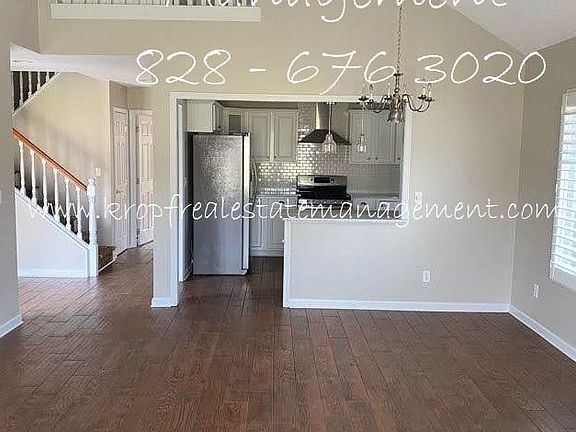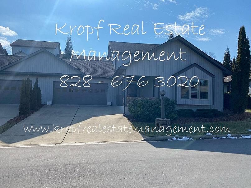 2 Bedroom, 2 bath townhouse with office in Kyfields in Weaverville. Tile floors in living room, kitchen and bathrooms, carpet in bedrooms and office. Gas fireplace, two car garage, heat pump, marble counter tops, gas stove, dishwasher, stove and fridge. Master on main level, large closets, washer/dryer hook ups, covered front porch and back patio with retractable awing. Will consider pets. $2400 per month. Application, lease and deposit. Kropf Real Estate Management Company Inc. Security deposit is one month's rent based on clean credit report, background check and references.