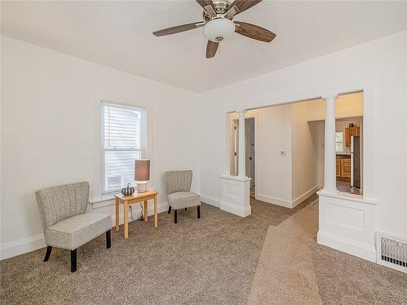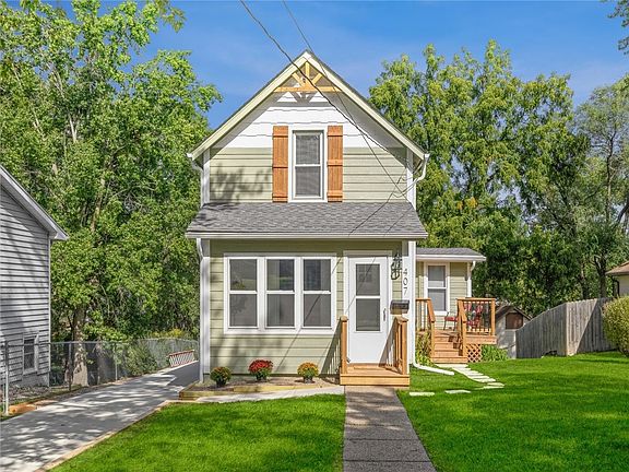 Can you say New? This 3 Bedroom, 1.5 bath home is has so much New! This 1916 build has new cement board siding & trim, custom shutters & custom gable bracket, new landing at front porch and a new deck on the east side of the home.  There is new paint Inside and out, flooring, bath fixtures, push-up blinds throughout, hickory cabinets, counter-tops and stainless-steel appliances!  A new concrete driveway and walkway to front door add not only practicality but beauty to this nicely updated home!  Windows have been replaced over the years, so no original windows. The main floor consists of a cute enclosed front porch, a living room that opens to a flex room with 2 colonnades which leads to the eat-in kitchen, a full bath and door to deck. The east side deck is perfect for morning coffee or grilling in the evening!  Upstairs are 2 bedrooms; one has its own ½ bath. The bedrooms have unique shapes, not mundane square rooms and all bedrooms have closets! The large basement has plenty of storage, with a walk-out door to a large back yard, which has fencing on 2 sides. This home is Move-In ready!