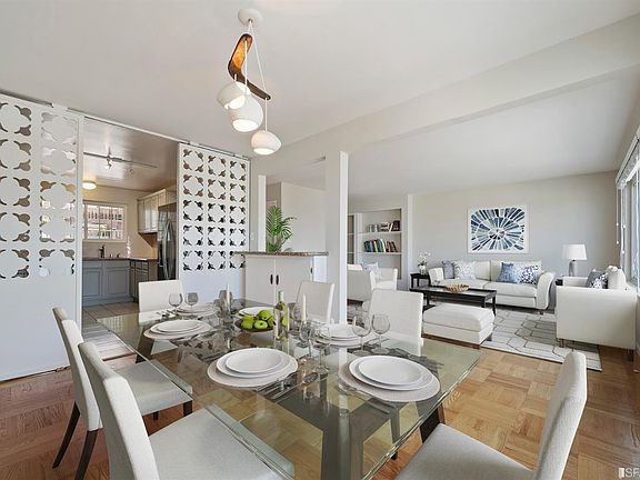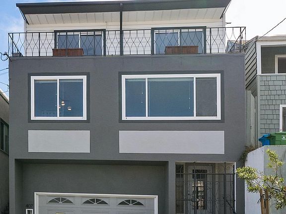 Bright and spacious house offering the best of indoor/outdoor living and panoramic views - this is the perfect home for today! Living room and dining room with Bay and City views, built in buffet and bookshelves. Kitchen with stainless steel appliances including a 5 burner gas range and double door refrigerator/freezer and double sink, granite countertops and ample cabinetry. Three bedrooms each with generous closet space and full bath with double sinks on 2nd level. Two bedrooms have Bay and City panoramic views from their own separate deck, and the 3rd bedroom overlooks the newly landscaped garden. The main level also has a half bath and direct access to the flat deck and terraced garden. The back yard has 3 sitting/dining areas in addition to a lush turf grassy area and fully irrigated planters. There is also a garage with interior access into the house for 2 cars and full size laundry. The house has been virtually staged.