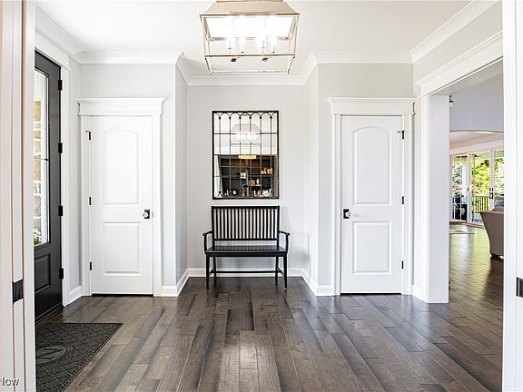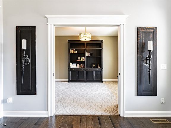 Welcome to 407 Leighfield Lane located in the desirable Danbury Glen community. This spacious, custom built Rembrandt home is situated in a sought-after neighborhood with top-rated Lake Local Schools. Walk onto the expansive front porch and enter the foyer where you will experience the "WOW” effect of the home's design, setting the tone for a space rich with character. Experience custom millwork, crown molding, and gleaming hardwood floors throughout the home! The kitchen is a true entertainer's delight with stainless appliances and gleaming countertops, a large center island and a walk in pantry. This opens to a great room with vaulted ceilings, custom fireplace and spectacular views! Completing the first floor are a half bath, mudroom, and office. Upstairs, retreat to the owner’s suite with his and her closets with ample closet space, and an ensuite bathroom featuring a luxurious soaking tub. Two more bedrooms share a Jack and Jill bathroom. Also, the upstairs features a large laundry room with plenty of space for folding and storage. This house also features a covered deck, walk out basement, and patio that has a custom built fire pit. Don’t miss out to own this exceptional property in one of the most desirable communities in Hartville that features a heated pool, clubhouse, basketball court & walking path around a stocked pond. Schedule a your tour today!