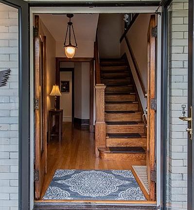Love at First Sight! You will immediately be drawn into the charm of this lovingly maintained home with it's gabled roof and inviting covered front porch featuring original double front door and arched roof. The infatuation will continue once you step inside and see the gleaming woodwork and period details of the home. This home boasts all of the historic features you love in an older home with all of the modern updates you need! The first floor has newer hardwood floors, original fireplace and large rooms. A later addition boasts an expanded eat-in kitchen with tons of storage, and gas cooktop for the chef of the household. A first floor master and full bath complete the addition. Upstairs you will find 3 more generously sized bedrooms with original pine flooring and another full bath. The outside does not disappoint! The large double lot allows for a spacious deck, off street parking in front and behind the home and a generously sized yard. Don't miss out on this gem!