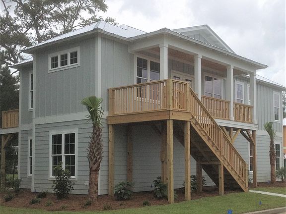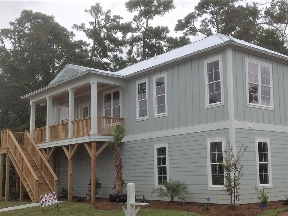 Brand New Home. Amazing charm. Fabulous location. Hardiplank exterior with metal roof. The open floorplan encompasses a high end kitchen and beautiful living room and dining areas. The kitchen offers a large island, granite counters, stainless appliances, custom cabinets and pantry. The owner's suite includes a beautiful bathroom with dual sinks, shower and large walk in closet. The main floor includes a half bath and laundry room with wash basin. Family and guests have three bedrooms and a full bath with dual sinks. All bedrooms have walk in closets. Beautiful hardwood laminate, tile and custom lighting. Two door garage with side access door. This unique lot is twice the size of most and has green space to the left for privacy. Possibly the best homesite in the community. The HOA includes lawn maintenance. Irrigation system, palm trees and outdoor shower. Community pool with clubhouse, splash pool and restrooms. Walk, golf cart or ride a bike to the beach, grocery store, restaurants, bakeries, fitness center, public library, liquor store and more.