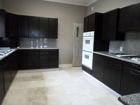 5 bedroom, 6 bath, formal living, Den, Office, Maid’s quarters, laundry room, 2 wet bars, 2 Attached Car Garage, Alarm System wired for Audio/Video, 1 Story, Stucco Construction, Carpet & Tile Floors, Sprinkler System front and back, Block fence, All the chandeliers convey, Good size Kitchen with granite countertops Gas Stove, 2 Central Air /Heat Units