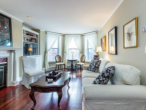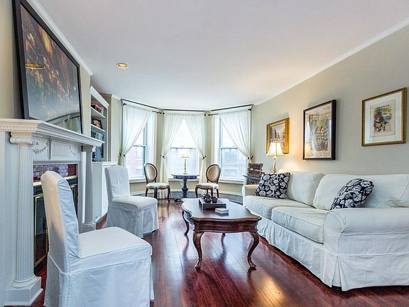 Charming, front facing one bedroom, one bath unit on the sunny side of Marlborough Street. Located in a classic elevator brownstone, this jewel box home features an open floor plan with original pocket doors between the kitchen and living room. Detail and molding throughout, including dark stained hardwood floors, bow window, built-in work space and Federal-style fireplace. The large eat-in kitchen features stainless steel appliances and granite countertops, as well as the in-unit laundry and oversized storage closet. The bedroom is bright and cheery. Fantastic common roof deck with city & river views. Conveniently located close to shopping, MIT, the Hynes T Stop, Storrow Drive and the Mass Pike. Rental parking at the Somerset Garage available for an additional $350/month. Photos are from a previous tenancy.