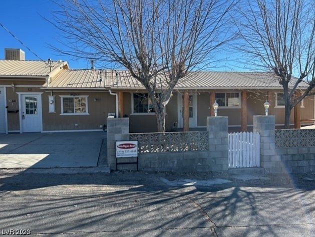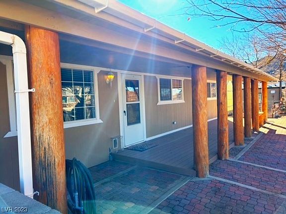 Charming mid-century home has been in the same family since it was built, perched on a hill across the street from the Tonopah Historic Mining Park. A covered porch across the front is supported by log poles, and a ribbed steel roof covers the entire structure. Modernized with energy-efficient oil heat, a pellet stove and updated kitchen and bathrooms. Kitchen includes fridge and pantry. The large hall bath has cast iron claw-foot soaking tub and stall shower. Primary bedroom has an ensuite bath. Large laundry room includes washer/dryer, cabinets and sink. The attached garage is the ultimate man cave with a heater, swamp cooler and woodstove, built in desk and cabinets. Bonus room opens to back yard. 20' Conex box stays. Raised garden beds and a greenhouse make this home a delight for gardeners. Front yard is finished with low maintenance rock and pavers. *Ready for emergencies with an 8 circuit generator which comes on automatically in a power outage. Includes propane tanks.* WOW!