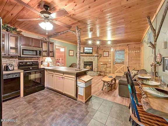Cozy and private 2 BD/2 BA, 900+ sq. ft. mountain log cabin located in Mountain Shadows, a well-established resort community, right in the heart of Gatlinburg's Arts & Craft community. It is a great location, just mere minutes to downtown Gatlinburg, the community center, Mills Park, Anna Porter Library, along with shopping and dining on the arts loop. Currently on a well-established short term rental program, generating around $40k in gross annual rental income. It features both front & rear covered deck areas, with the rear deck boasting a hot tub. The cabin is nestled in a beautiful & tranquil wooded setting with mature hardwoods and native rhododendrons. Inside this log cabin, you have a large great room, complete with an open living room, mountain stone fireplace, open dining area and a fully equipped kitchen with tile countertops. Each bedroom has its own private bath & closet space, with the master math having its own whirlpool. The second bedroom also includes a recreation room. Only mere minutes to many of this area's most well-known attractions, including the Great Smoky Mountain Park, Rocky Top Sports World, & much more. It's also easily accessed from the Newport exit at I40, avoiding the crowds and traffic in Pigeon Forge. Come see it today before it's too late!