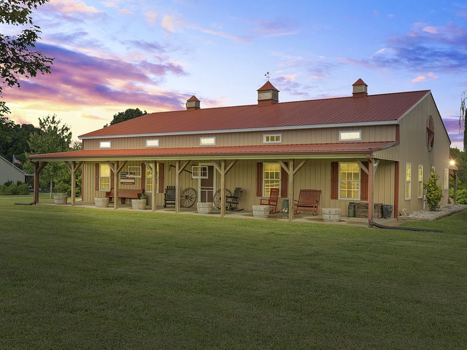 Beautiful custom built Farmhouse Barndomenium boasting 12 foot ceilings throughout. Offering a cool, classic exterior and modern open interior perfect for those that love to entertain. Gourmet kitchen with wall to wall cabinetry, double oven, and bar. Incredible separate dining designed to accommodate a feast. Fantastic great room overlooking it all. Cozy primary suite, separate tub and shower. Sweet tea sipping porches. Separate matching 3 car garage and carport. All nestled on a corner 2.53 acre tract. Garage 55x30, sleeved plumbing in concrete for easy access. 5 ton heating and air unit. Framed with 2x6 walls. Kenmore Elite Refrigerator will convey with sale. Showings start Friday 09/02/2022. Allow at least one hour notice on all showings.