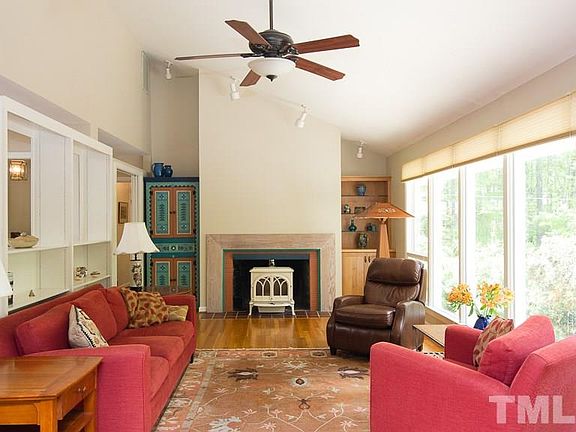 Updated Morgan Creek home has it all! 1 acre lot of lush gardens & tall trees, this mid-century classic home features redone kitchen & baths, & a walk-out lower level family room. Enjoy the garden view from deck or oversized screen porch w/ beadboard cathedral ceiling. Living room with wall of windows & wood stove. The renovated kitchen enjoys shaker-style cabinetry, stainless appliances, granite tops, tile splash & floor, & more! Cozy breakfast banquette for your am java. Sophisticated. Stylish.