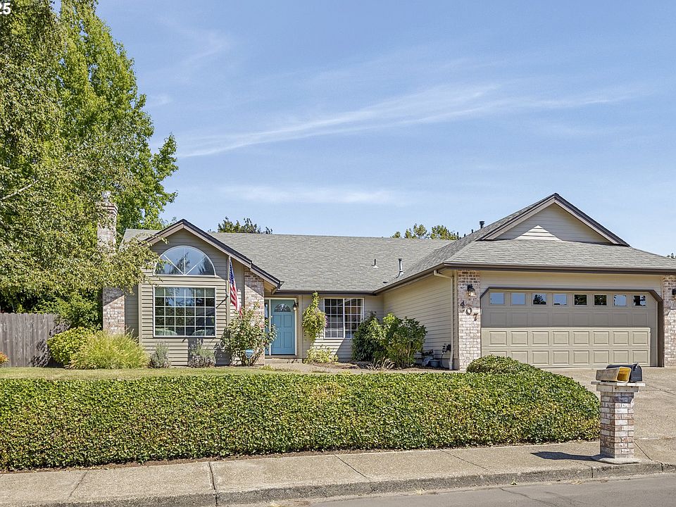 Light, bright, and beautifully maintained, this home is move-in ready from day one! Gorgeous Acacia hardwoods flow through the main living spaces, while plush carpet adds comfort to the bedrooms. The vaulted living room feels airy and welcoming with a gas fireplace and large, south-facing window that floods the space with natural light. The refreshed kitchen shines with granite counters, stainless steel appliances (all replaced in recent years — and all included!), and plenty of storage. The primary suite offers double sinks, granite counters, and a private space for the shower and toilet, while the generous secondary bedrooms are ideal for family, guests, or a home office. Outside, a fully fenced yard offers privacy with mature trees, a charming brick paver patio, raised garden beds, and a storage shed. Tucked on a quiet dead-end street in a wonderful neighborhood, you're just steps from Buckley Park. Call to schedule a showing today!