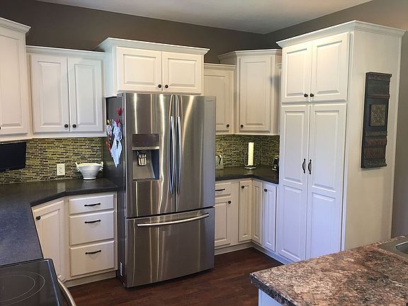 407 N 11th St., Marysville, KS. Nice two story home for sale in a good location, close to the elementary school. Less than one year old remodel on kitchen, living room, and basement. Main floor is 707 square feet. Kitchen with brand new custom cabinets, all stainless steel Samsung appliances, split level bar and full dining area that houses additional cabinetry, a serving area, and a beverage fridge. Living room has cathedral ceilings, a wood burning fireplace, and built in surround sound. Basement is 505 finished square feet with a full wet bar and cabinetry, family room and TV area, and new full bathroom with tiled walk in shower. Basement also includes 232 square feet of unfinished area where utility room, laundry, and lots of extra storage are located. New AC and furnace in 2015, that heats and cools basement and main floor. New water softener installed in 2015. 697 square feet of finished area on second floor that includes three bedrooms, one full bathroom with a tub/shower combo , and a linen closet. Additional upstairs AC and furnace installed in 2015 to provide heat and air to the second story. Outside is fully landscaped with a covered patio area that is set up with lights, ceiling fan, and TV hook up. A privacy fence surrounds entire backyard. Attached single car garage. $173,000