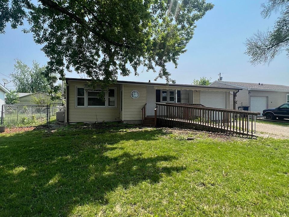 This home has had some major updating done! Newer vinyl windows, kitchen has new cabinets, counter, backsplash, and appliances not to mention newer flooring. Updated bathroom, laundry room off garage. Fenced backyard and an oversized one car garage with additional workshop area. Located on the North side of town. All information obtained from seller and public records.