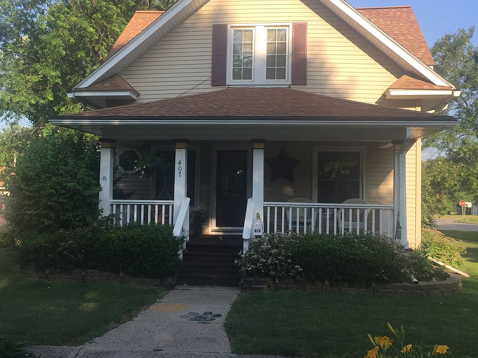 Turn key older home with large flat corner lot and beautiful landscaping! Updated kitchen and bathrooms! Upstairs bathroom with whirlpool tub and tile surround. Original wide trim with open stair case. Roof new in 2010. Furnace and air in 2011. Newer stainless appliances. Large deck with newer French door. Oversized two car garage. On demand hot water heater. Gas fireplace. Bedrooms come with skylights and vaulted ceilings. Recessed lighting in kitchen and bedrooms. Come see this cute house and sit on the porch swing!